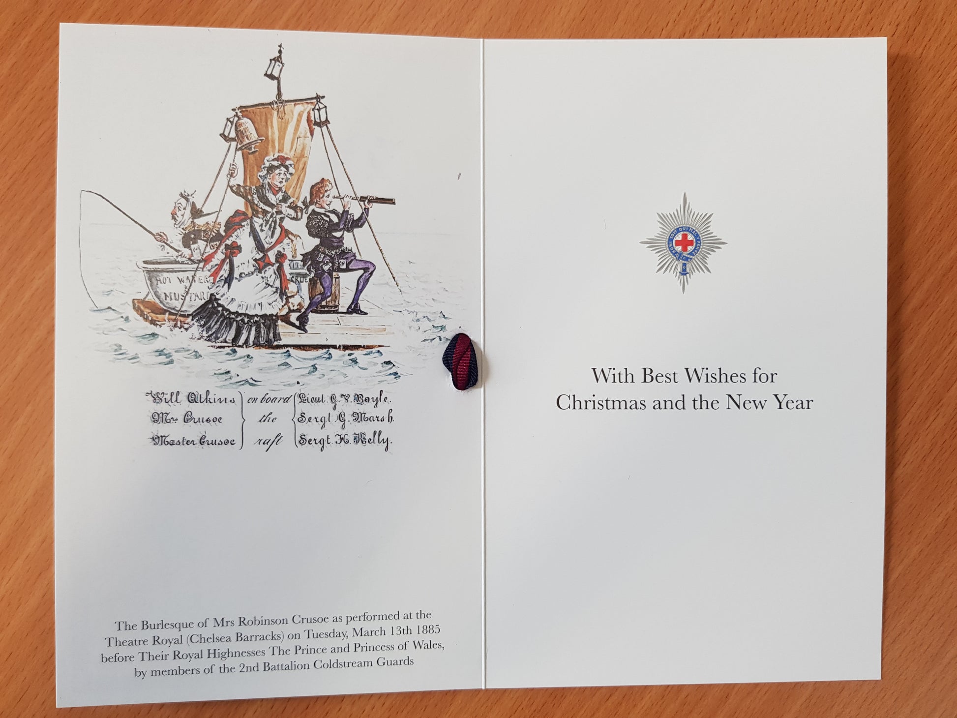 "The Burlesque of Mrs Robinson Crusoe as performed at Theatre Royal (Chelsea Barracks) in March 1885 before HRHs the Prince and Princess of Wales, by members of the 2nd Battalion Coldstream Guards"